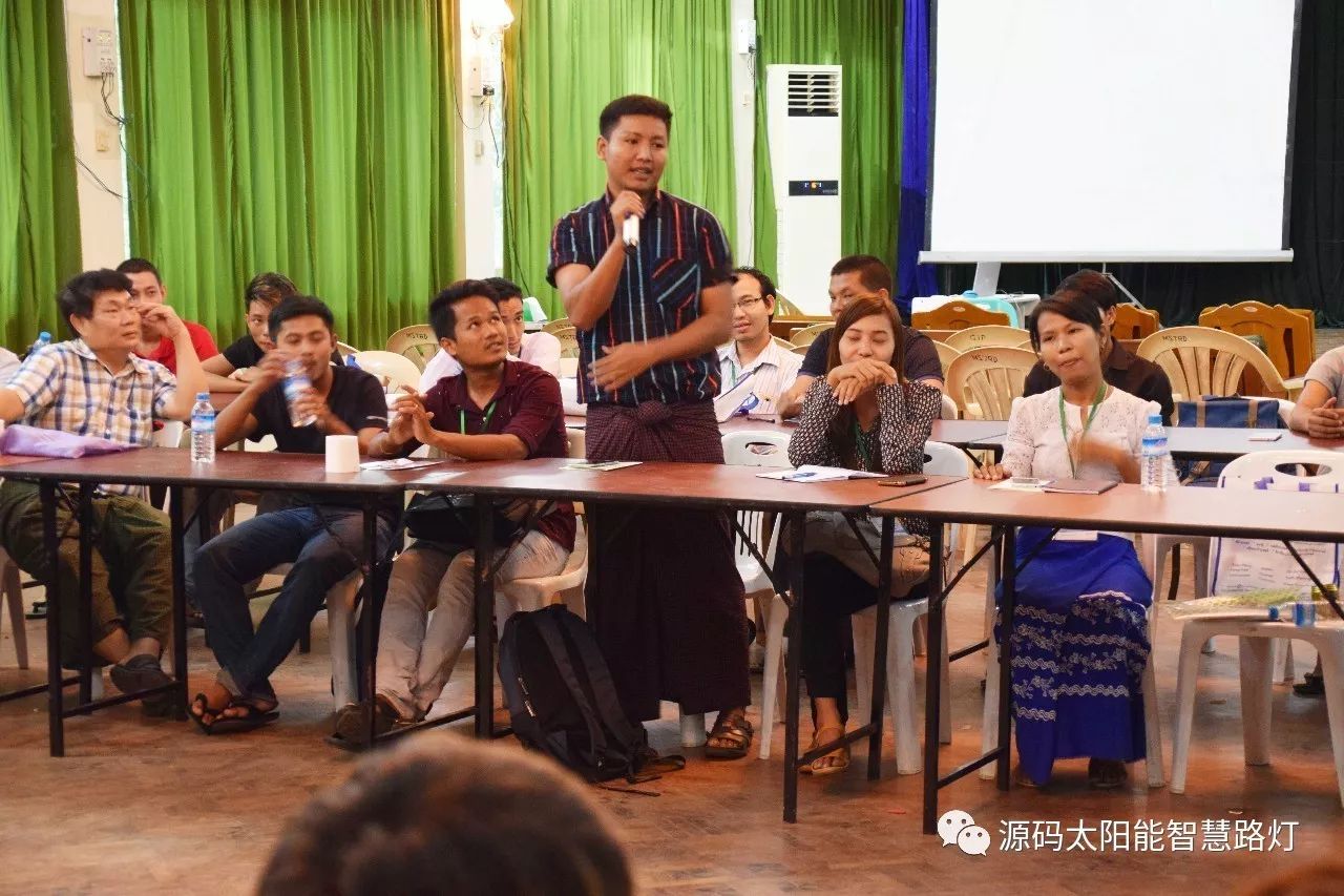 在培訓會議后,大家對此次的培訓綜合內容及取得的效果進行了深入研討,參與此次培訓的能源部、政府部門的相關人員以及大學教授、企業代表都對此次培訓會的效果表示滿意,也希望以后能有更多的類似的培訓會,源碼也希望在以后的培訓中能夠給他們帶來更好的效果。研討會后,中國駐緬甸大使館領導對本次會議作了總結:對本次培訓會議的培訓方云南省綠色能源行業協會以及源碼太陽能智慧路燈表示感謝,表示此次會議對雙方的技術交流學習以及中緬兩國友誼的加深都取到了十分良好的效果。接著緬甸教育部科技司司長則親自向所有通過考試的學員頒發了證書,在頒獎過程中,源碼也向緬甸教育部科技司捐贈了兩套太陽能智慧路燈。